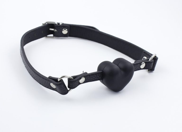 Klasični ball gag s crnim srcem. Metalna kopča. Univerzalna veličina. Fetish sex oprema. BDSM. A120B